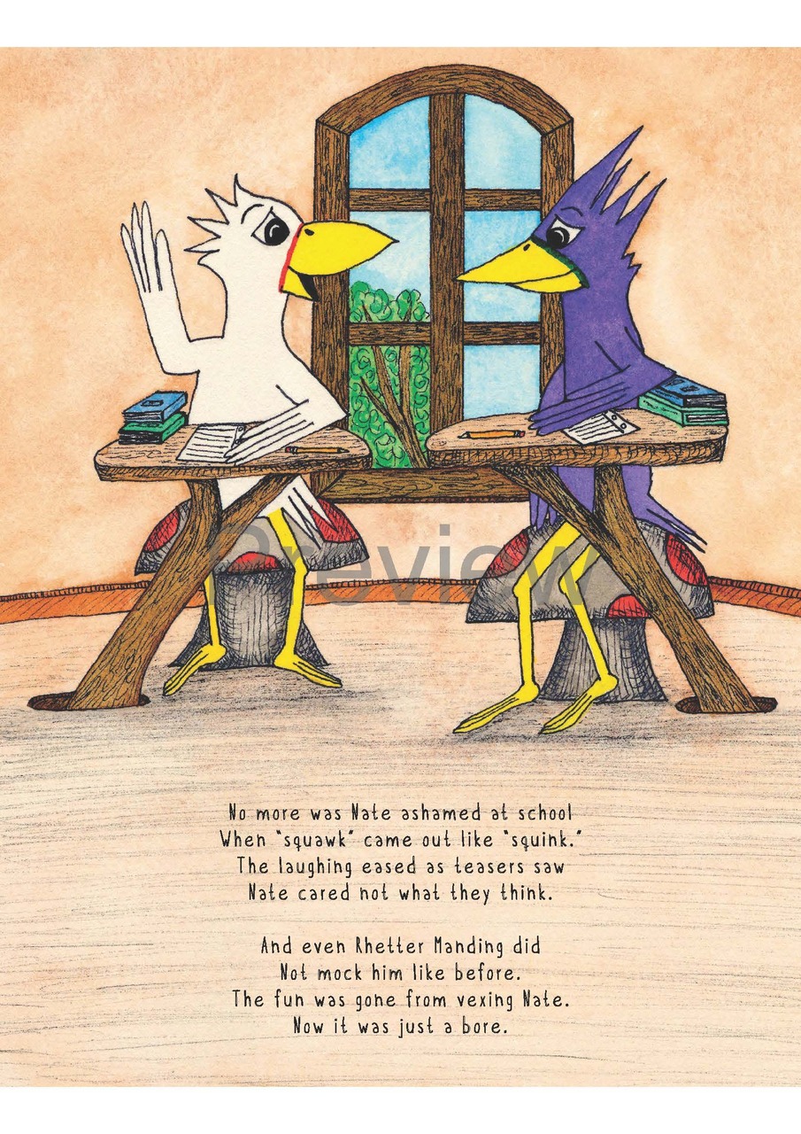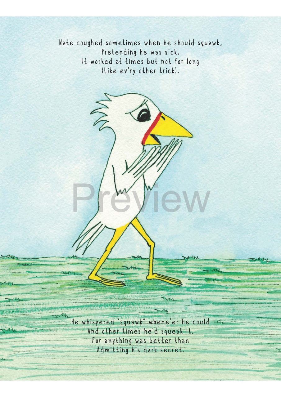 a familiar tale for many children who stutter. From Nate’s attempts to hide his squawking difficulties, to